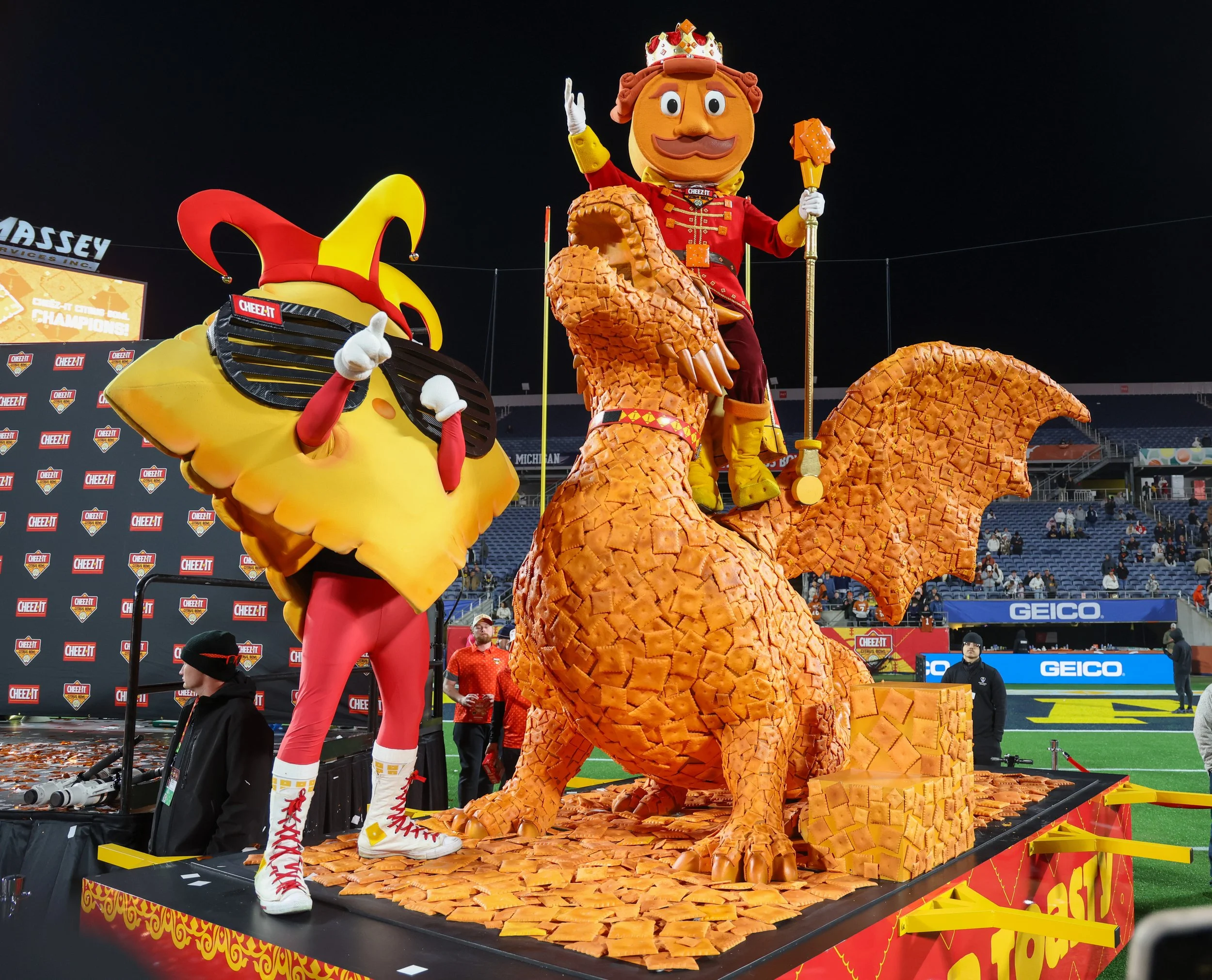 Mascots are staples at Bowl Games. These unhinged spectacles have turned normal fans into obsessed ones. Starting with the GOAT mascot: Prince Cheddward.
